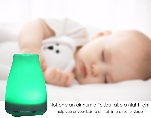 - Aroma Diffuser Spark Your Kid's Imagination with 7 Changing Mood Lights, each of which is adjustable between Bright and Dim modes, and could be set steady on. Great night light for young children scared of the dark at bedtime. Color including: Green, Dark blue, Red, Yellow, Pink, Light blue, White.s Out. Portable for Home, Yoga, Office, Spa, Bedroom, Baby Room. Perfect gift idea for family and friends who love aromatherapy or can benefit from Aromatherapy healing.