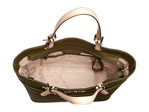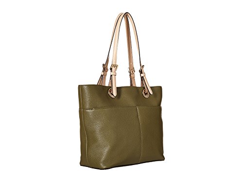 Binding : Accessory Product Description This classic tote features four outside pockets for practical storage. Contrast handles complete the look with visual appeal. It's sure to become your next go-to handbag! ? 16-in. W x 11-in. H x 5-in. D ? Top zip closure ? Exterior: 2 front slip pockets, 2 back wall slip pockets ? Interior: 2 front slip pockets, 2 back wall slip pockets, 1 back wall zip pocket, 1 key clip ? Double top handles with 8.5-in. drop ? Gold-tone hardware; self-color stitch trim ? Body: leather; Lining: polyester 0