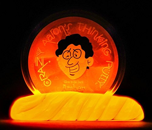 Thinking Putty comes in 30 colors, including glow-in-the-dark, heat-sensitive, and electric-colored putty. It can stretch like rubber and bounce like a ball, and because it's silicone-based, it won't dry out or crumble over time. It's part toy, part stress reliever, part physical therapy and entirely addictive. Once you start playing, it's hard to stop! Glow in the Dark Thinking Putty is hypnotic and irresistible. Milky white in daylight, their glow magically appears when the lights dim. It's translucent -- so the glow appears to come from deep within!. Use our Blacklight Keychain to write messages on the putty and draw special designs!. Tear it in darkness and watch it spark!. Each tin contains 1/5lb of Thinking Putty. Made in the USA. Amber is an exotic jack-o-lantern glow that is simply awesome! Use with our Blacklight Keychain for a glow visible in a lit room! After about an hour, the magic fades...until next time!. Perfect for anywhere you like to play. After exposure to light (the brighter, the better) these colors will glow for hours. Amber Thinking Putty's exotic jack-o-lantern glow is simply awesome. Use with our Backlight Keychain for a glow visible in a lit room. After about an hour, the magic fades. Until next time.Feature