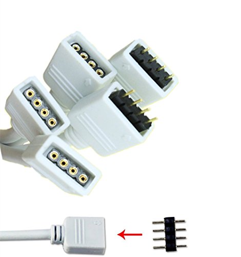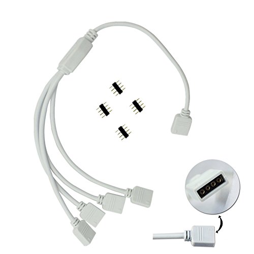4 Pin LED Splitter, Ltvystore White LED Splitter Connector Cable Wire for RGB 5050 3528 Strip Ribbon Light (1to4 splitter cable)