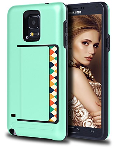 Galaxy Note 4 Case, Coolden® Ultra Rugged Armor Impact Resistant Exact Fit Bumper Protective Shell, Samsung Note 4 Card Slot Wallet Back Panel for Samsung Galaxy Note 4 (Mint)