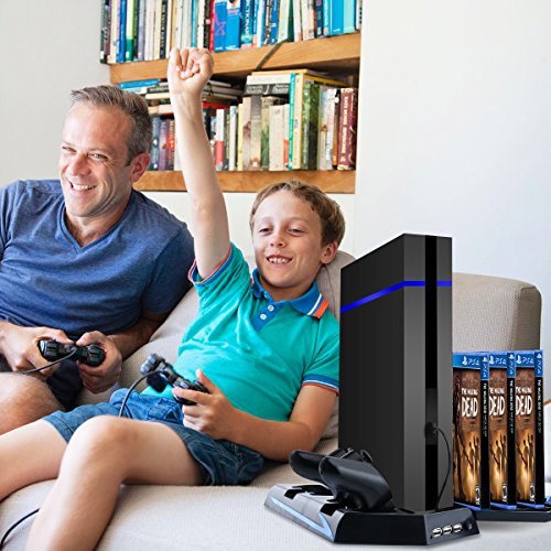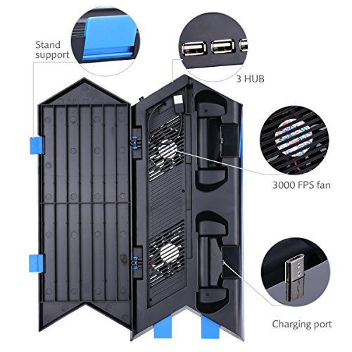 3000 FPS FANS: 2 professional built-in cooling fans work well to keep your PS4 from overheating and prolong the lifespan of your PS4 console. 2 USB ports for charging your shock controllers simultaneously.