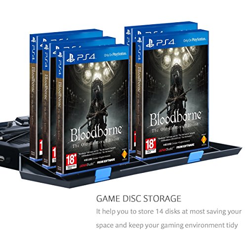 AWESOME GAME DISC STORAGE : Constructed with 14 slot Game disc storage area, you can easily store your game discs close to your PS4. Space saving! No need to buy another game disc storage tower.