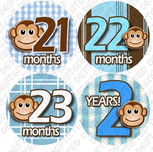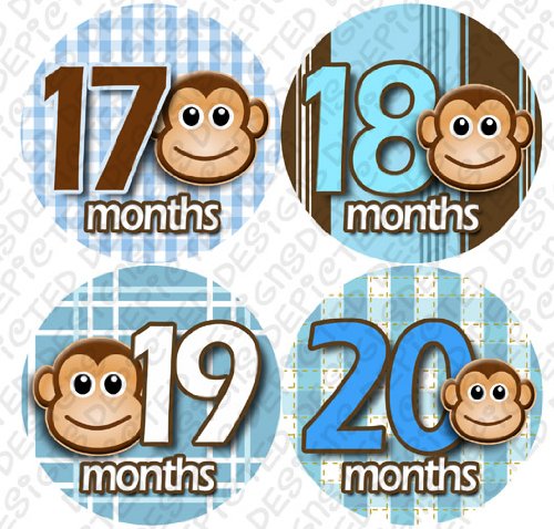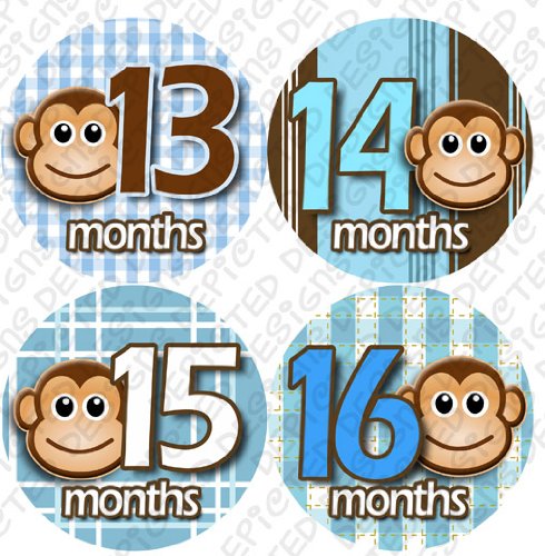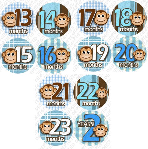13-24 MONTHS BLUE MONKEY STRIPE Onesie Stickers Baby Shower Gift Photo Shower Stickers, Baby month stickers by OnesieStickers