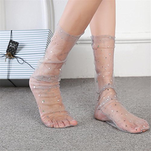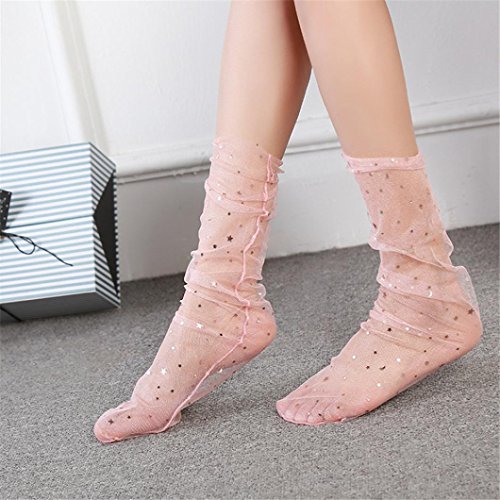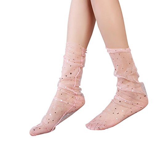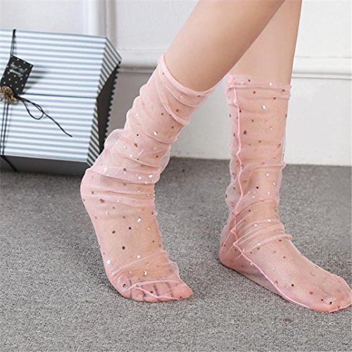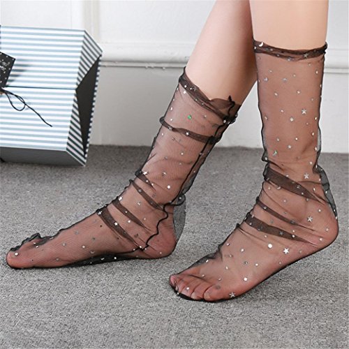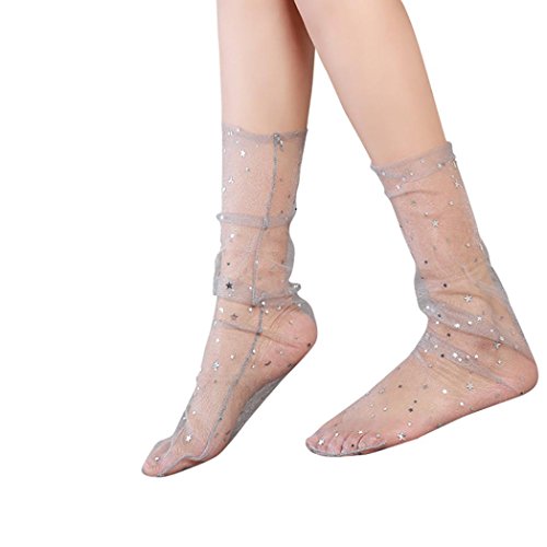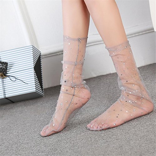 (Inkach)/Women's/Sandals/DIRECT FROM USA/Inkach Womens Fish Net Socks - Trendy Girls Glitter Star Elastic Ankle Socks Transparent Mesh Socks