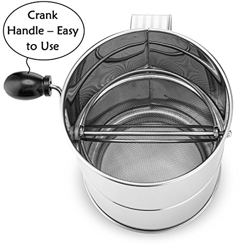 Flour Sifter 8 Cup Baking Tool – Rotary Hand Crank Style with 16 Fine Mesh Screen – Stainless Steel Corrosion Resistant – Sugar Sifter - Decorate Cakes, Pies, Pastries, Cupcakes