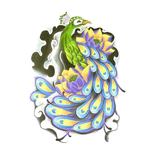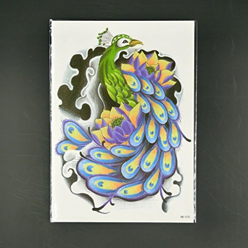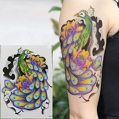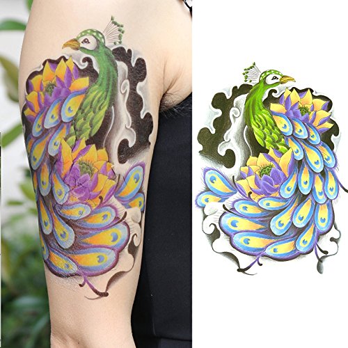 Oottati Old School Peacock Feather Color Arm Temporary Tattoo