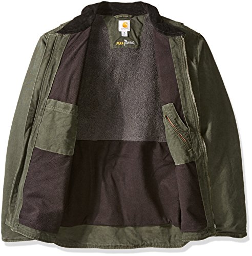 Studio : Carhartt Sportswear - Mens Publisher : Carhartt Sportswear - Mens Binding : Apparel Product Description Looks traditional, feels exceptional. Engineered design provides stretch without bulk, and every element works with you so you can work easier. This full swing jacket's features work hard, so you're more comfortable doing hard work. Made from 12- ounce sandstone, 100 percent cotton sandstone duck and features mighty back bi-swing between shoulders for instant recovery, flex elbow for less restriction, freedom gusset under the arms helps stops ride-ups, rugged flex stretch sherpa lining in upper body and fleece lining in lower body, corduroy trimmed collar with under-collar snaps for optional hood, zipper with inside storm flap, left-chest pocket with zipper, two lower-front pockets, internal rib-knit storm cuffs with ergonomic shaped sleeve hem, inside pocket with hook-and-loop closure and zipper, bottom hem bungee and triple-stitched main seams for durability. 0