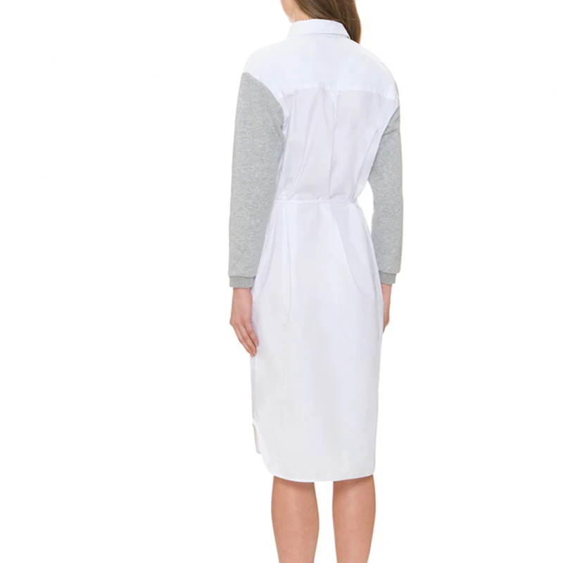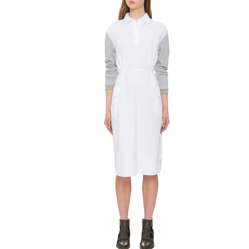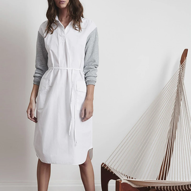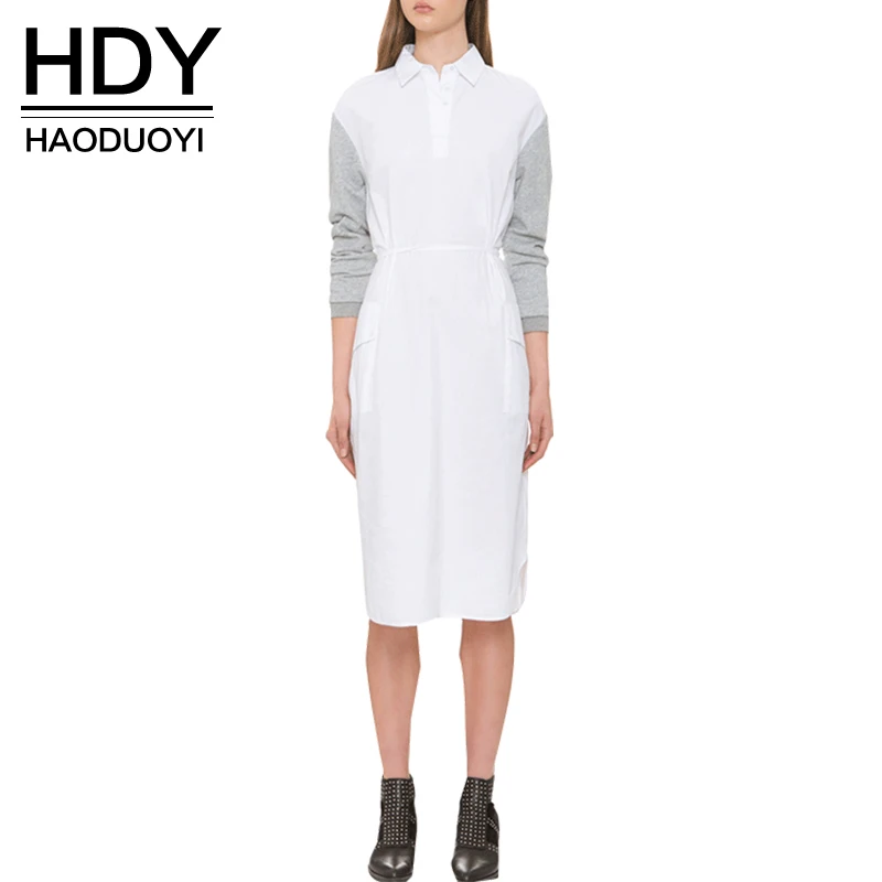 HDY Haoduoyi White 40.1% Cotton Pockets A-line Dress Sexy Turn Down Collar Drawstring Mid Dress Street High Waist Casual Dress | |||||||||||||||||||||||||||||||||||||||