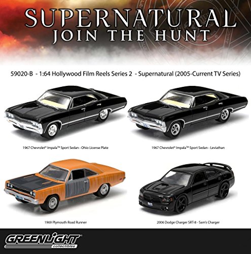 -. Binding : Toy -. Brand : Greenlight -. EAN : 0787799628430 -. Feature : Set of 4: Greenlight Hollywood Film Reels "Supernatural" 1:64 Scale / Official Licensed Product, Limited Edition (Serialized on chassis) / Die-cast metal chasiss / Special "Movie Tin" casing with custom movie packaging / Adult Collectibles! Recommended for 8 years and up (Small parts, Not for children under 3 years) -. IsAdultProduct : 0 -. Label : Greenlight -. Manufacturer : Greenlight -. MPN : 59020-B -. PackageQuantity : 1 -. PartNumber : 59020-B -. ProductGroup : Toy -. ProductTypeName : TOYS_AND_GAMES -. Publisher : Greenlight -. Studio : Greenlight -. Title : Set of 4: Greenlight Hollywood Film Reels "Supernatural" 1:64 Scale -. UPC : 787551578195