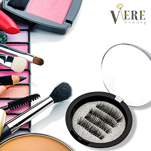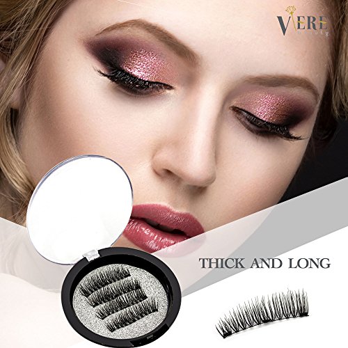 Magnetic Eyelashes, VereBeauty Magnetic False Eyelashes with 3 Magenet 3D Longer & Thicker Glamorous 100% Handmade False Eyelashes (4 Pcs, Black)