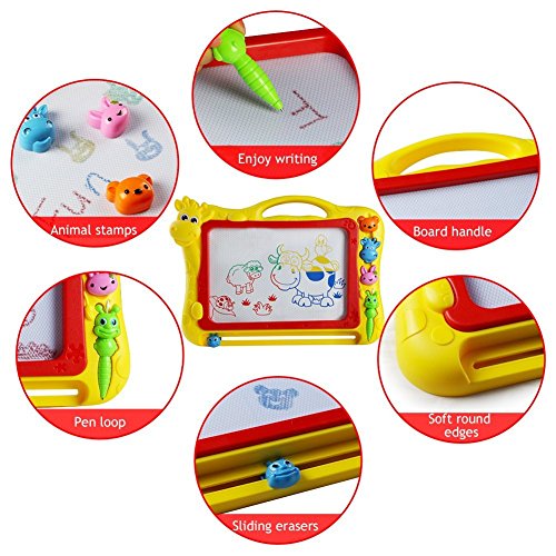 Magnetic drawing board.Includes one pen and three cute animal magnetic stamps.