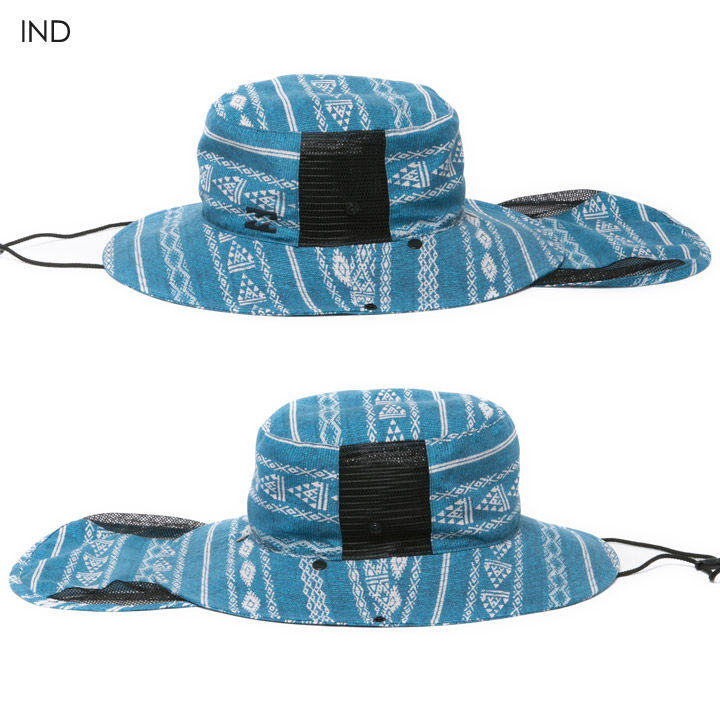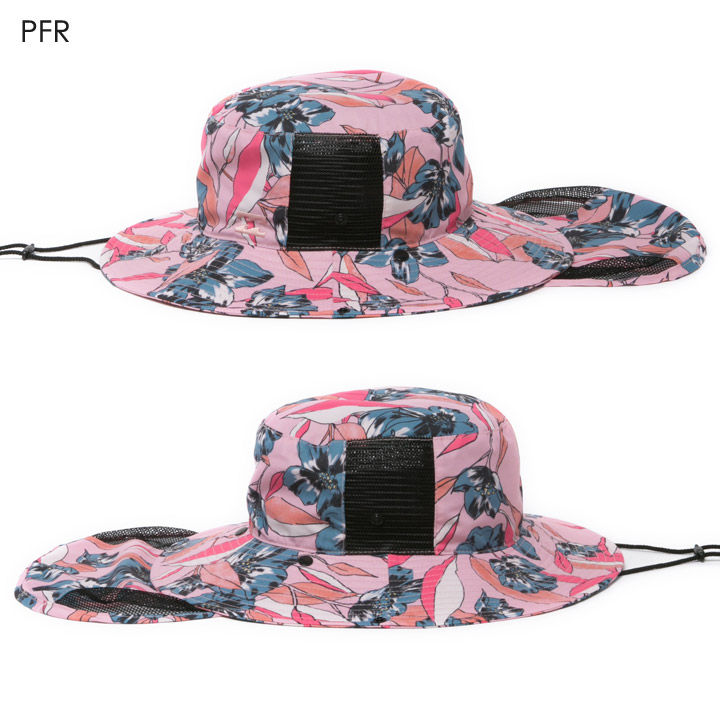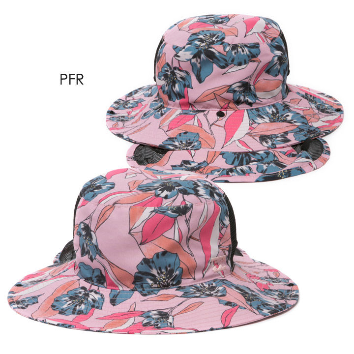 今シーズンのビキニ柄を使用したサーフハット。微起毛をかけたポリエステルピーチ素材なので肌触りも◎。クラウン周りにはメッシュ素材を採用し、通気性を良くすることで長時間の着用もストレスを感じさせません。日除けガードや取り外し可能なループストラップ、サイドをロールアップできるボタン付き。アウトドアやフェスの日焼け対策はもちろん、ビキニやラッシュガードなどに合わせたビーチファッションアイテムとして活躍します。