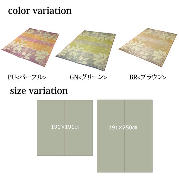 【素材】表地=い草(九州産)※紋織 裏地=ウレタンフォーム6mm ヘリ=(ブラウン・グリーン)綿85%、麻15% (パープル)綿100%
