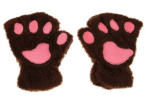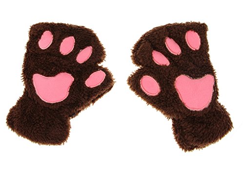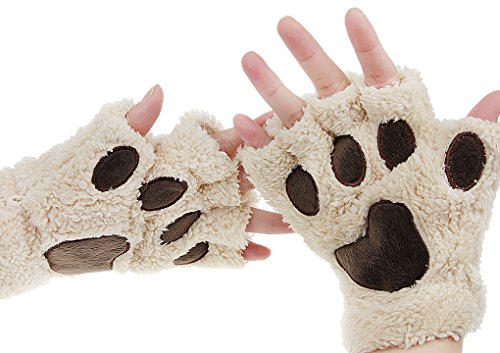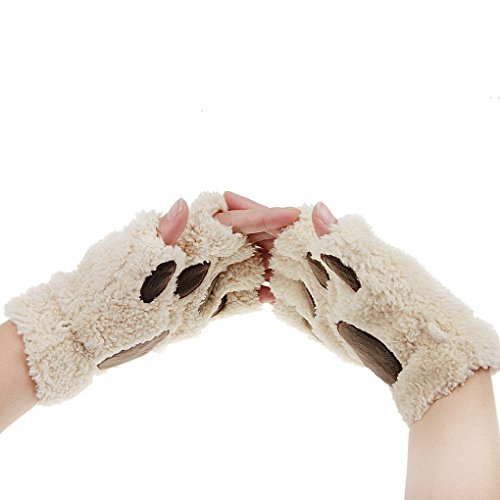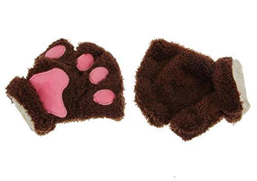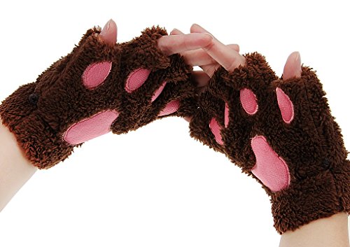 (YLucky)/Accessories/Cold Weather Accessories/DIRECT FROM USA/Warm Plush Bear Cat Palm Claw Gloves Half Finger Gloves Mittens for Cosply Costume Ball Christm...