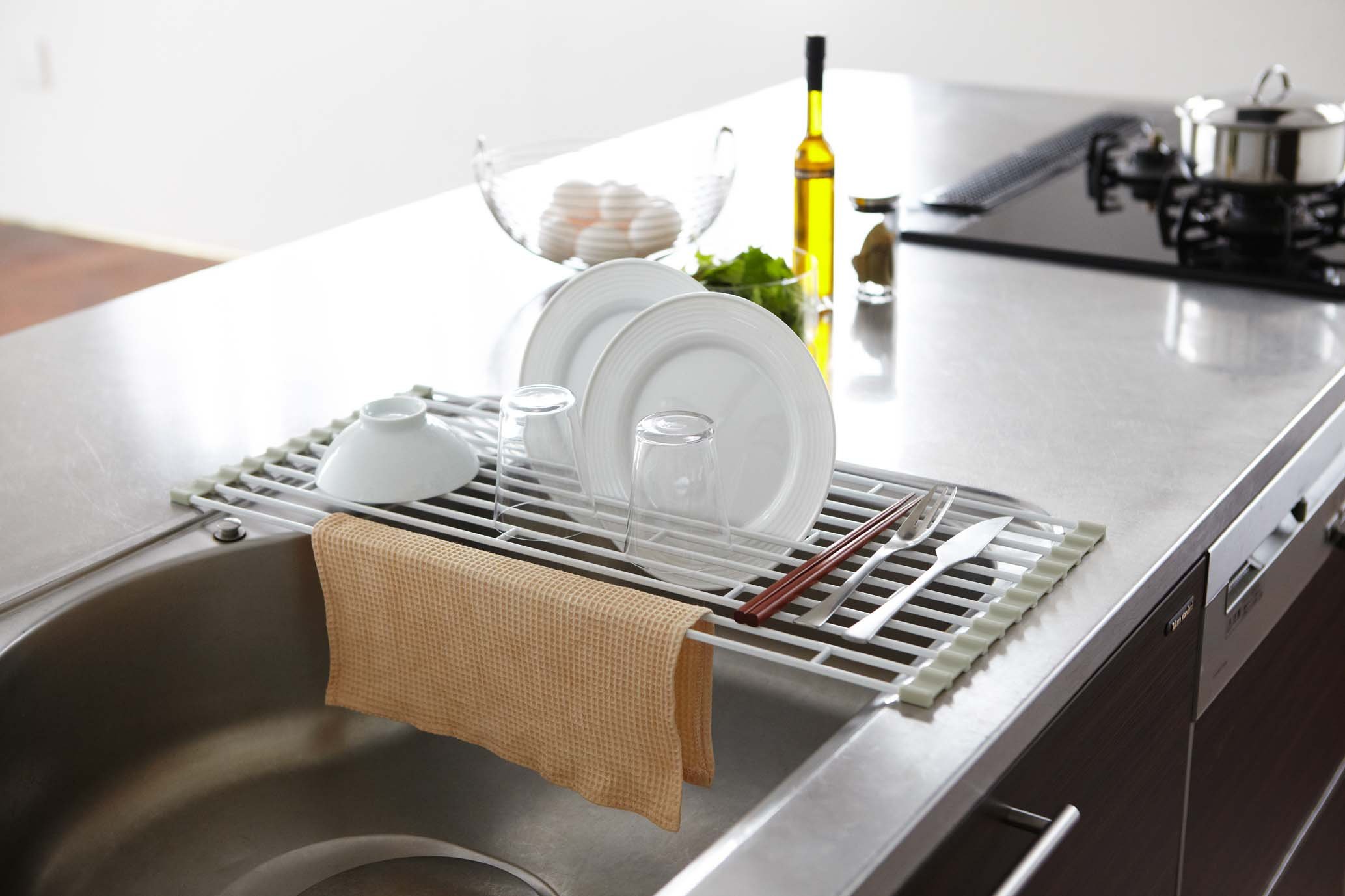 YAMAZAKI home Plate Folding Sink Drainer Rack White Large