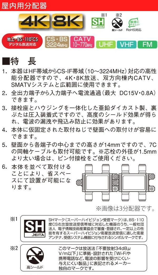 fk094igrjs亜鉛ダイカストケースを使用した分配器です サイズ 個装サイズ:6×16×3cm 重量 個装重量:170g 付属品 取付ねじ(本体取付済)、5C用F型接栓、取扱説明書 製造国 中国 亜鉛ダイカストケースを使用した分配器 亜鉛ダイカストケースを使用した分配器です ご注文後3~4営業日後の出荷となります