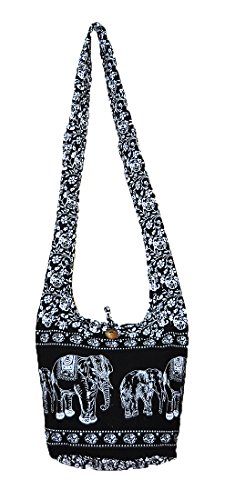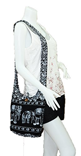 Thai Hippie Hobo Sling Crossbody Shoulder Bag Purse Handmade Black Elephant Gypsy Boho Medium M977