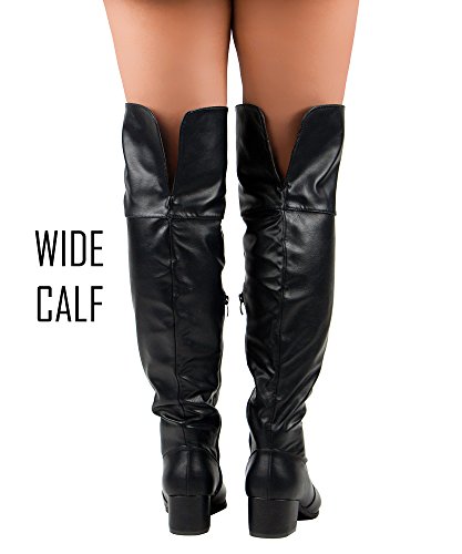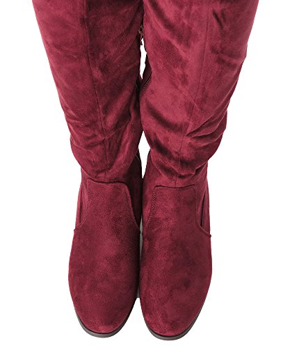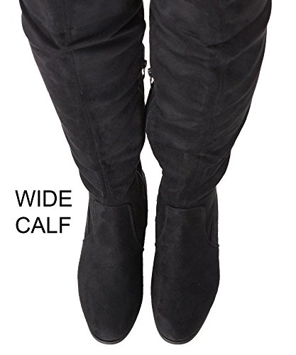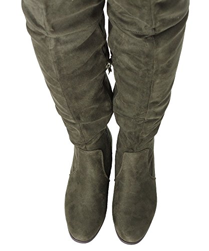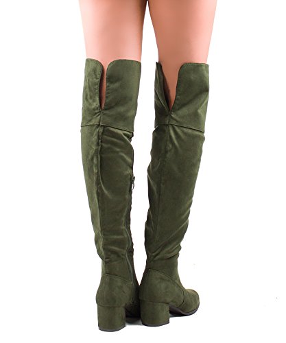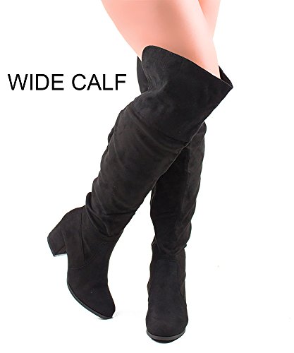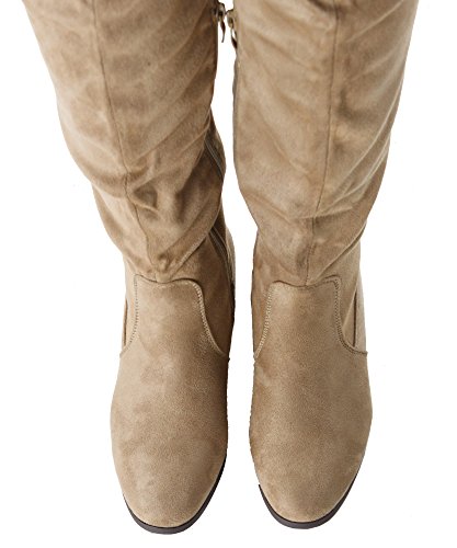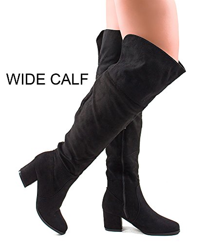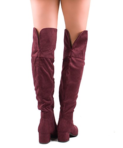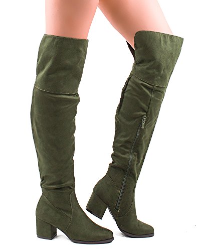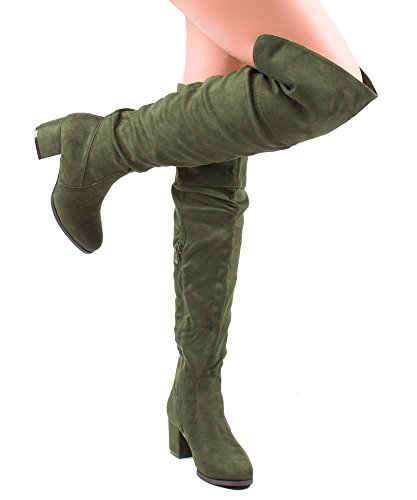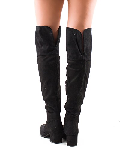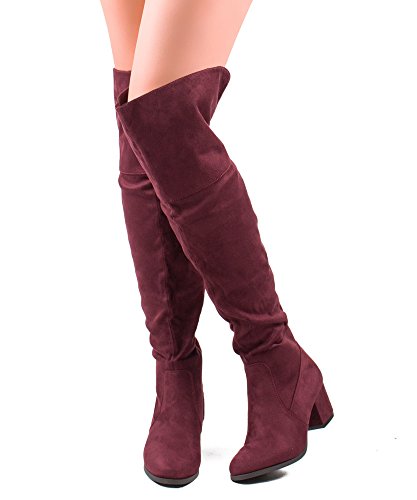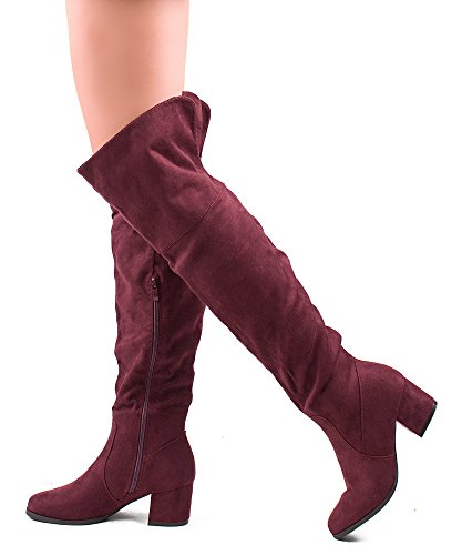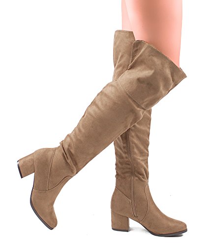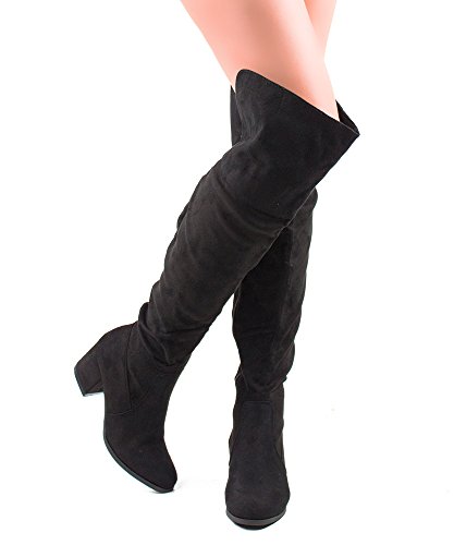 | RF ROOM OF FASHION Women's Fashion Faux Suede Block Chunky Heel Over The Knee High Boots |