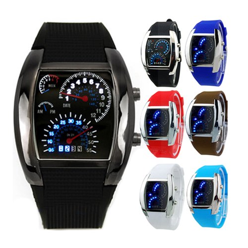 -. Title : Fashion Mens RPM Turbo Blue Flash LED Watch Gift Sports Watches Car Meter Dial