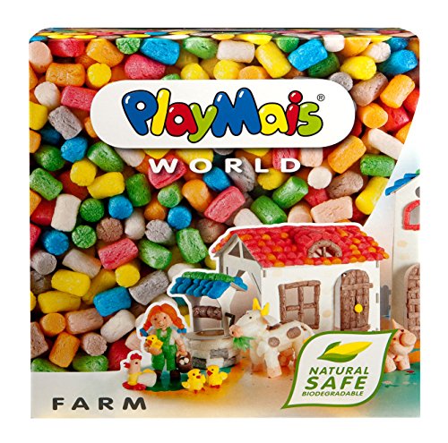 -. Feature : PlayMais can be re-shaped, squeezed, cut and molded into practically any shape / By simply moistening the pieces with a little bit of water they will stick to each other and to many different surfaces / Made in Germany, 100% biodegradable, natural and safe arts and crafts material. PlayMais is made from corn starch, water and food coloring / Contains more than 1000 PlayMais, pre-cut cardboard to build your farm, instructions, sponge and some accessories. Box size: 11W x 11.5H x 5D inches / Helps develop fine motor skills, encourages creative thinking and is easy and fun to play, provides hours of open-ended play