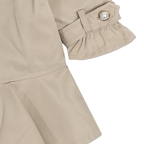 상품설명 베이지 컬러의 트렌치 코트입니다. 허리에 스트라이프 벨트를 포인트로 타운스럽게 연출 할 수 있습니다. 소매와 밑단에 프릴이 장식 되어 세련된 느낌을 더합니다. 원피스와 매치하면 고급스러우며, 스커트나 팬츠와 코디하면 러블리하게 연출 할 수 있는 아이템입니다.