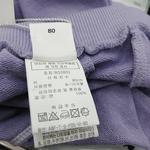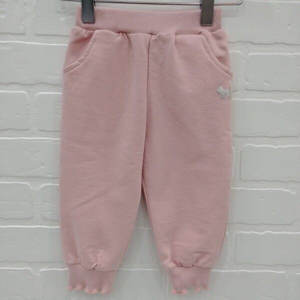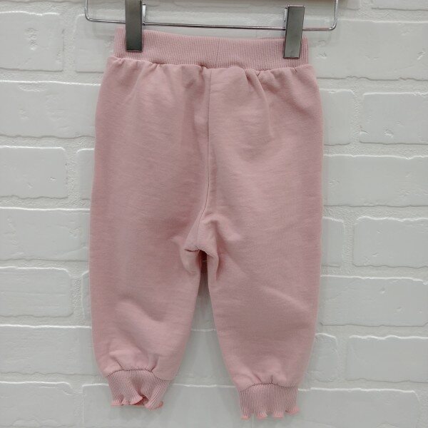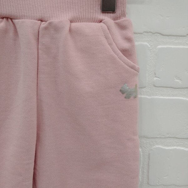 바지 밑단에 배색 인타록 장식이 들어간 배기팬츠 앞 포켓 부분에 박나염이 포인트로 들어감.