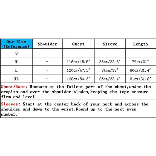 (L): Chest 120CM/47.1INCH, Sleeve 84CM/33INCH, Length 80CM/31.4INCH.