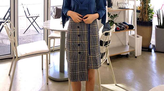 H line check Unsounded lap skirt Autumn opening opening appearance Trendy contemporary design taste sniping