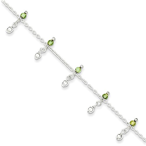 -. Title : .925 Sterling Silver 1.00MM Peridot Bead Ankle Bracelet, 9 Inches