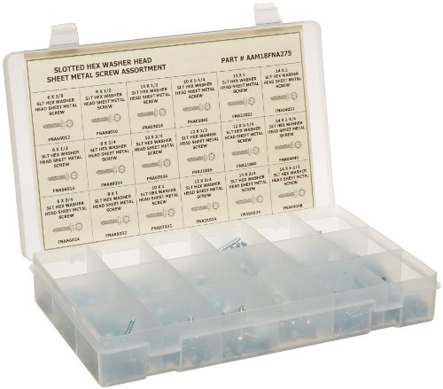 Zinc Plated Steel Slotted Hex Washer Head Sheet Metal Screw Set (275 Pieces) With Case