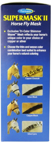 SuperMask II without ears, Shimmer Weave mesh color collection combines function with fashion like no other fly mask! The exclusive tri-color Shimmer Weave mesh reflects your horse's unique color, in your choice of trims.
