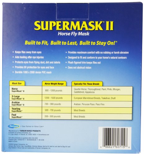Keeps flies, dust, dirt and debris away from your horse's eyes and face and also protects from harmful UV rays and aids in healing after eye injuries