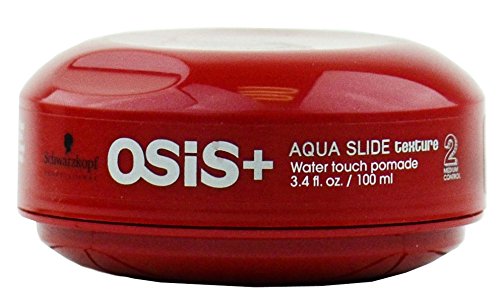 -. Binding : Health and Beauty -. Brand : Schwarzkopf -. EAN : 0795186111021 -. Feature : Schwarzkopf OSIS+ Aqua Slide Texture is a high shine pomade with an unexpected water-touch consistency. / Get all the excellent hold of a pomade without that sticky or greasy feeling with Aqua Slide, a new generation shaper, definer and separator that doesn't overburden your hair. / The unique aqua touch formulation is made up of a water-oil base that is infused with Water Mint, giving the hair a high shine finish. / Medium Control. / Net wt. 3.4 fl. oz. / 100 ml. -. IsAdultProduct : 0 -. Label : Schwarzkopf -. Manufacturer : Schwarzkopf -. MPN : 1630960 -. PackageQuantity : 1 -. PartNumber : 1630960 -. ProductGroup : Health and Beauty -. ProductTypeName : HEALTH_PERSONAL_CARE -. Publisher : Schwarzkopf -. Size : 3.4 Ounces -. Studio : Schwarzkopf -. Title : Schwarzkopf OSIS+ Aqua Slide Texture Water Touch Pomade - 3.4 fl. oz. -. UPC : 795186111021