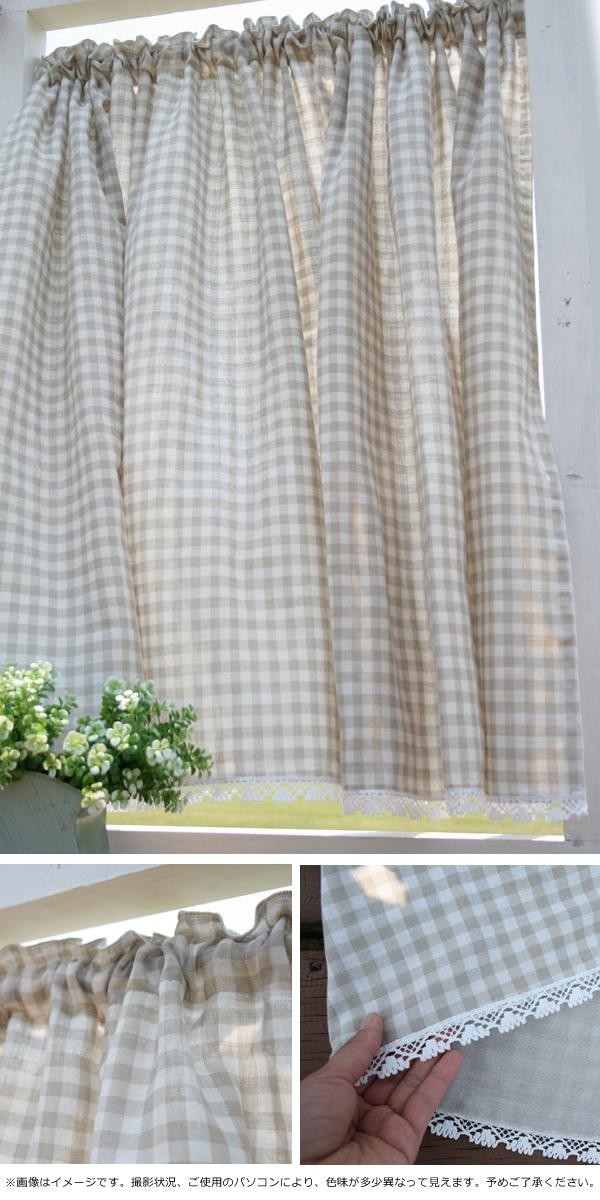 | 肌触りの良いダブルガーゼ生地にトーションレースをあしらったナチュラルで柔らかな雰囲気のカフェカーテンです。お手持ちのポール(つっぱり棒)にかけてお使い下さい。 |
