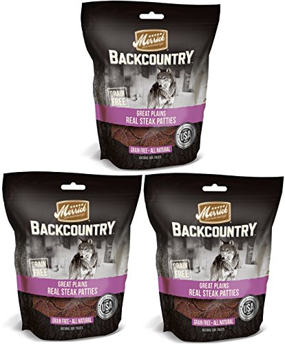 -. Binding : Misc. -. Brand : Merrick -. EAN : 0022808786078 -. Feature : 3 - FOUR OUNCE BAGS / Hearty patties feature a wood-smoked taste dogs go wild for / Grain-free and no gluten ingredients / #1 ingredient is real poultry or meat / Made in the USA No ingredients from China -. Label : MERRICK -. Manufacturer : MERRICK -. PackageQuantity : 3 -. ProductGroup : Pet Products -. ProductTypeName : PET_SUPPLIES -. Publisher : MERRICK -. Size : 3 - FOUR OUNCE BAGS -. Studio : MERRICK -. Title : NATURAL MERRICK REAL STEAK PATTIES DOG JERKY GRAIN FREE TREATS 3 BAGS MADE IN USA -. UPC : 022808786078