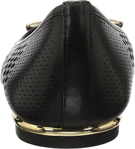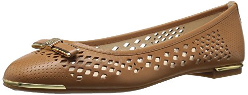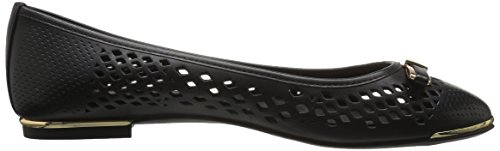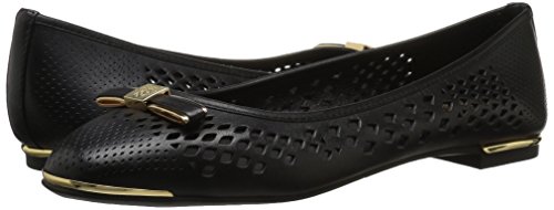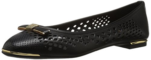 Product DescriptionBallet flat with metal rand on heel and toe, metal embellished bow, cutout upper0