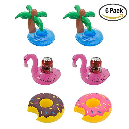 Kyson Inflatable Cup Holder Pool Toy - Flamingo Palm Tree Donuts Floating Drink Holder for Pool Party Summer Swimming Fun