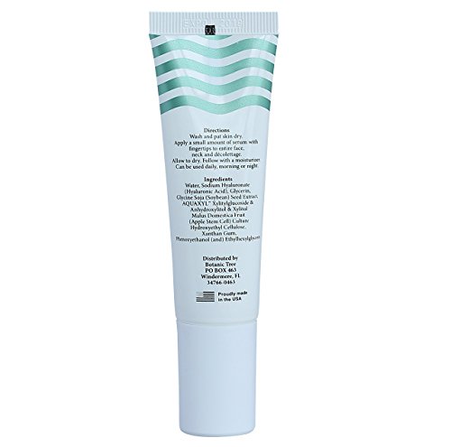 -. Binding : Misc. -. Brand : Botanic Tree -. EAN : 0651137742044 -. Feature : This hydrating hyaluronic acid serum with vitamin C is Body Merry's moisture replenishing and gentle daily facial serum for dry and wrinkled skin. / Hyaluronic acid serum is perfect for all skin types and anyone looking to restore some much needed moisture, address fine lines and even discoloration. / We blended this serum with anti-aging ingredients like Vitamins C plus E, Green Tea plus Jojoba Oil for youthful and dewy radiance. / You can use the serum on existing dry skin, wrinkles or spots on your face and neck or use it as a preventative product to help diminish those oncoming age signs. / MADE IN USA. -. IsAdultProduct : 0 -. Label : Botanic Tree -. Manufacturer : Botanic Tree -. MPN : BT -. PackageQuantity : 1 -. PartNumber : BT -. ProductGroup : Beauty -. ProductTypeName : BEAUTY -. Publisher : Botanic Tree -. Studio : Botanic Tree -. Title : Botanic Tree Hyaluronic Acid Serum for Anti-aging with Swiss Apple Stem Cell- 100% Organic Extracts. -. UPC : 651137742044
