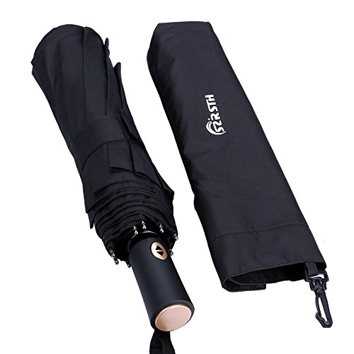 -. Title : SZRSTH 折り畳み傘 自動開閉 ワンタッチ 耐久性 Teflon加工10本骨 116cm 撥水加工 防雨防風 晴雨兼用 高密度NC布製 収納ケース付き (ブラック)