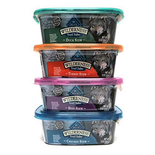 -. Title : Blue Buffalo Wilderness Grain-Free Trail Tubs Stew Variety Pack, 4 Flavors (Chicken, Duck, Beef, and Turkey), 8 Ounces Each (8 Total Tubs)