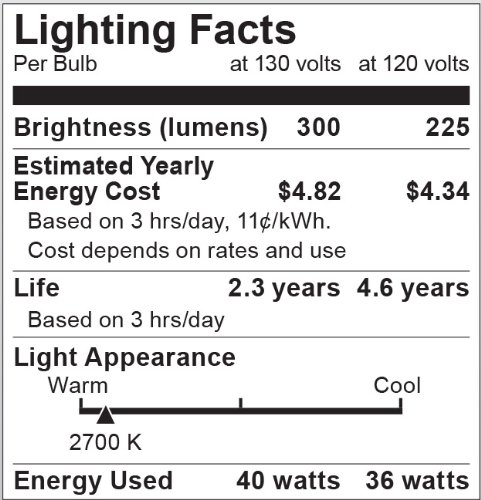 Studio : Satco Products Publisher : Satco Products Binding : Tools Home Improvement Product Description 2,500 average rated hours|300 initial lumens|c-9|4.0625 mol|2.38Mod|rohs compliant|40a19/Cl/Vs- sitcom incandescent lamp A19, vibration service, 40 watt, 130 volt, medium base, clear, 2 per box - 2474146 - manufacturer part number: S3941 - manufacturer: sitcom products 0