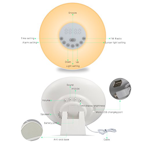 2017 UPGRADE VERSION SUNRISE SIMULATION FEATURE - New Version with Sunset and Snooze Function, 10 level of the White light, 6 Colorful lights for choosing!