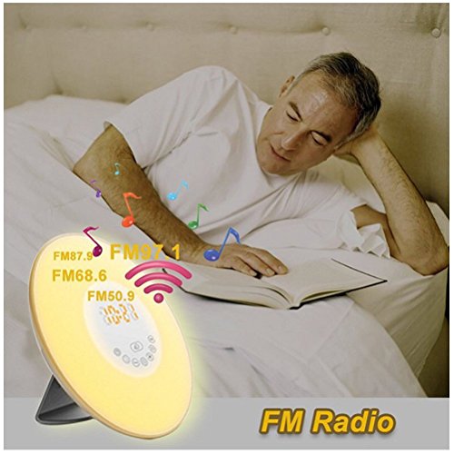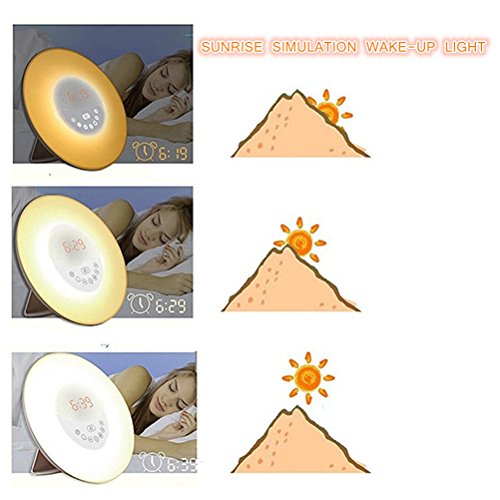 HBlife Colored Wake Up Light Alarm Clock, Sunrise Simulation Dusk Fading Night Light, Atmosphere Lamp with 7 Nature Sounds, FM Radio, Touch Control and USB Charger