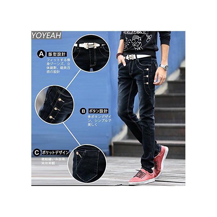 원본상품명: (ゆうや)YoYeah 多ボタン デニムパンツ ストレッチ スキニパンツ レジャジンズ 30 い