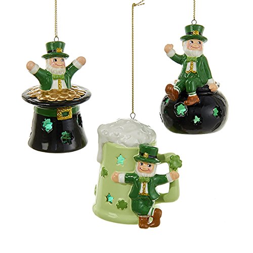 Kurt Adler 3 Assorted 3 Inch LED Leprechaun Christmas Ornaments