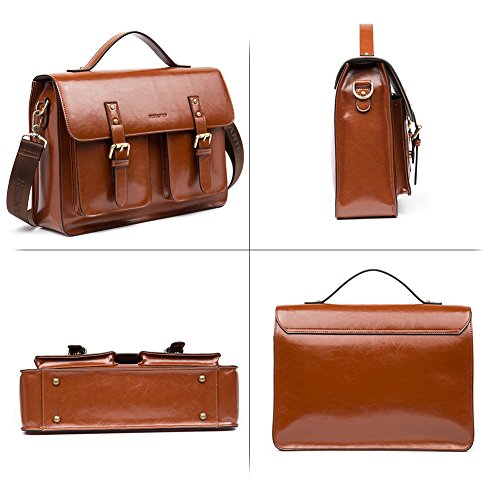 -. Feature : HIGH QUALITY MATERIAL: The messenger bag is made of full grains cowhides oil wax leather . Durable fabric lining, with light gold hardware. Bottom with metal rivet protective. / DIMENSIONS: (L)14.17" x (W)3.93" x (H)9.84" inch / (L)36 cm x (W)10 cm x (H)25 cm . Handle height is 7 cm/2.76 inch. Max strap length is about 61.41 "/ 156 cm; Net weight is about 2.42 lb/ 1.1 kg . / STRUCTURE: Interior with 1 big inner compartment + 1 zipper pocket + 2 slip pockets + 2 pen pockets. External with 2 magnetic pockets. The briefcase easily hold your 14 inch laptop, iPad, iPhone, A4 File, And other business things. / STYLISH : Hand made by professional artisans. .With one year Warranty, The messenger bag is a heavy-duty shoulder bag suitable for those who like casual.It is perfect for students, business professionals or travelers want to make a fashion statement / [ATTENTION]: BOSTANTEN products ONLY delivered by BOSTANTEN or Fulfilled by Amazon. And we have our own trademark. If you buy BOSTANTEN products from other delivery channel, BOSTANTEN disclaim any responsibility for your purchasing. Thanks! There are many different bags on our store. You can search BOSTANTEN on the amazon