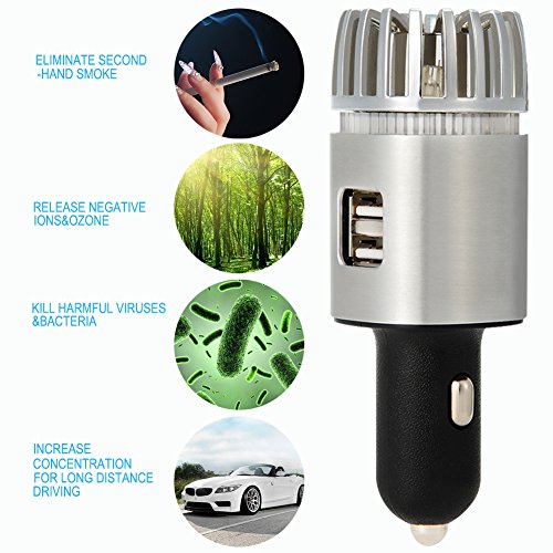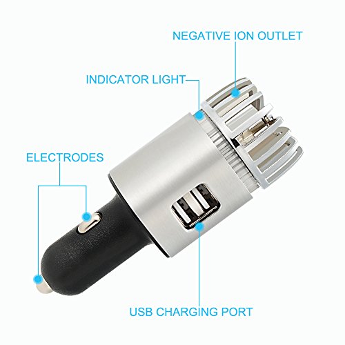 - MULTI-PURPOSE: Car Ionizer improving the air quality and removing unwanted smoke, odors, pollen,air propulsion, dust and more. Can help with: Allergic Bronchitis Allergic Sinusitis and Asthma.