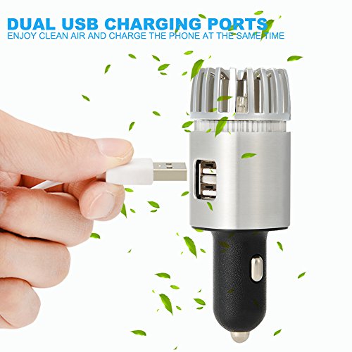 Car Air Purifier, Negative Ion Generator Car Freshener Remove Odor, Smoke, Dust, Bacteria with Dual USB Charging Ports Ideal for Automobile