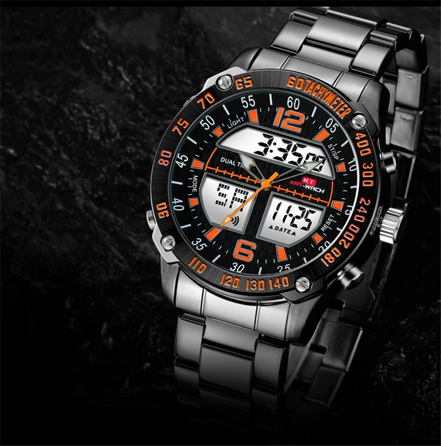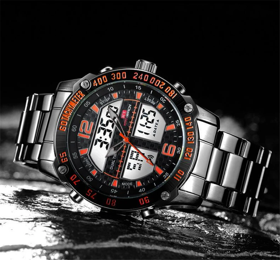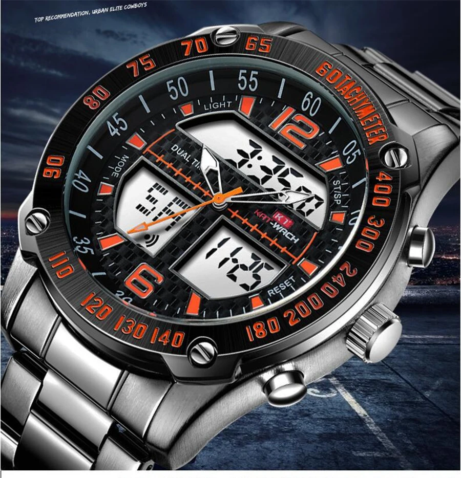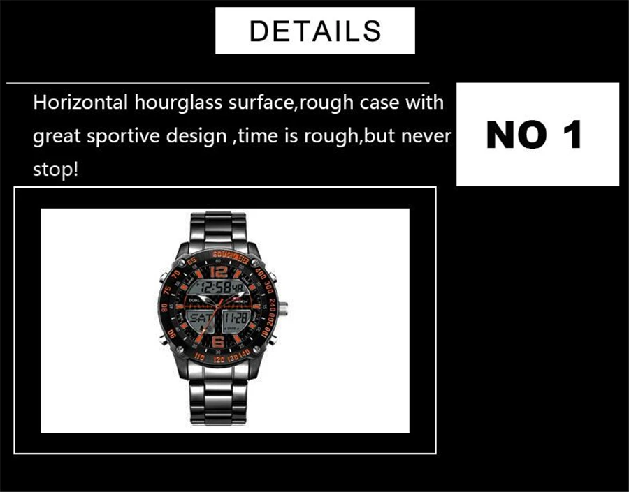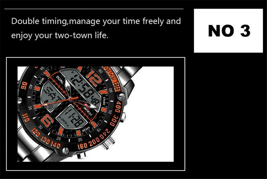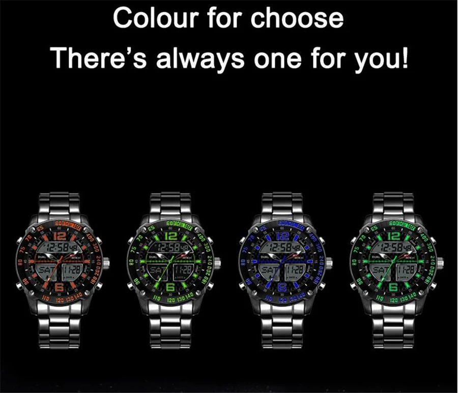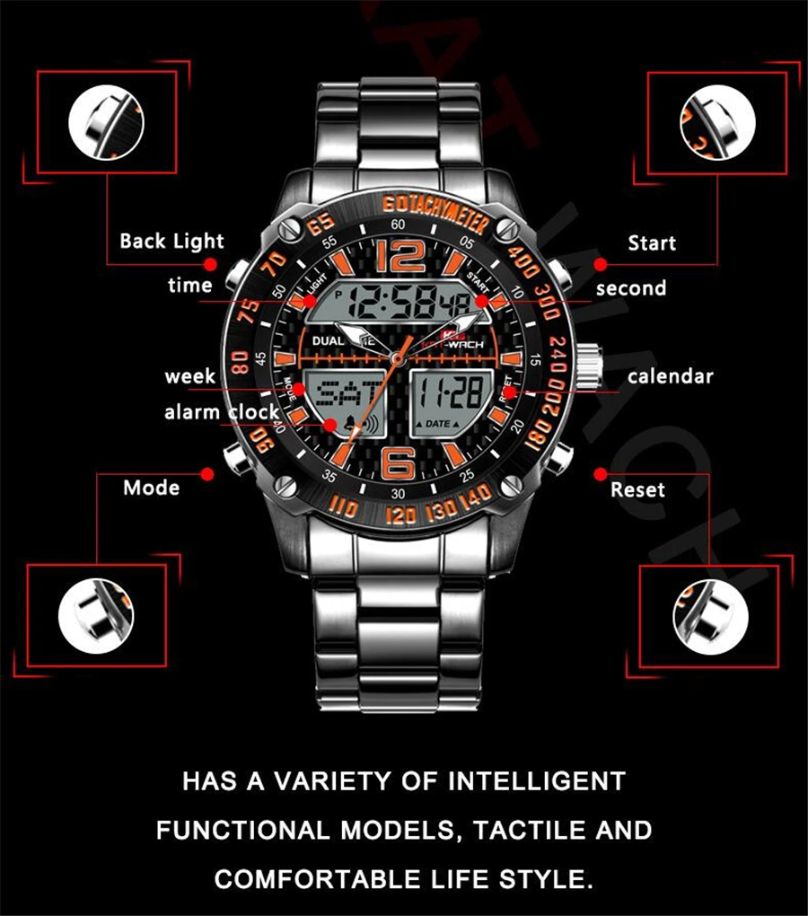 Feature:Complete Calendar,Shock Resistant,Stop Watch,LED display,Auto Date,Week Display,Water Resistant,Chronograph,Multiple Time Zone,Swim,Alarm